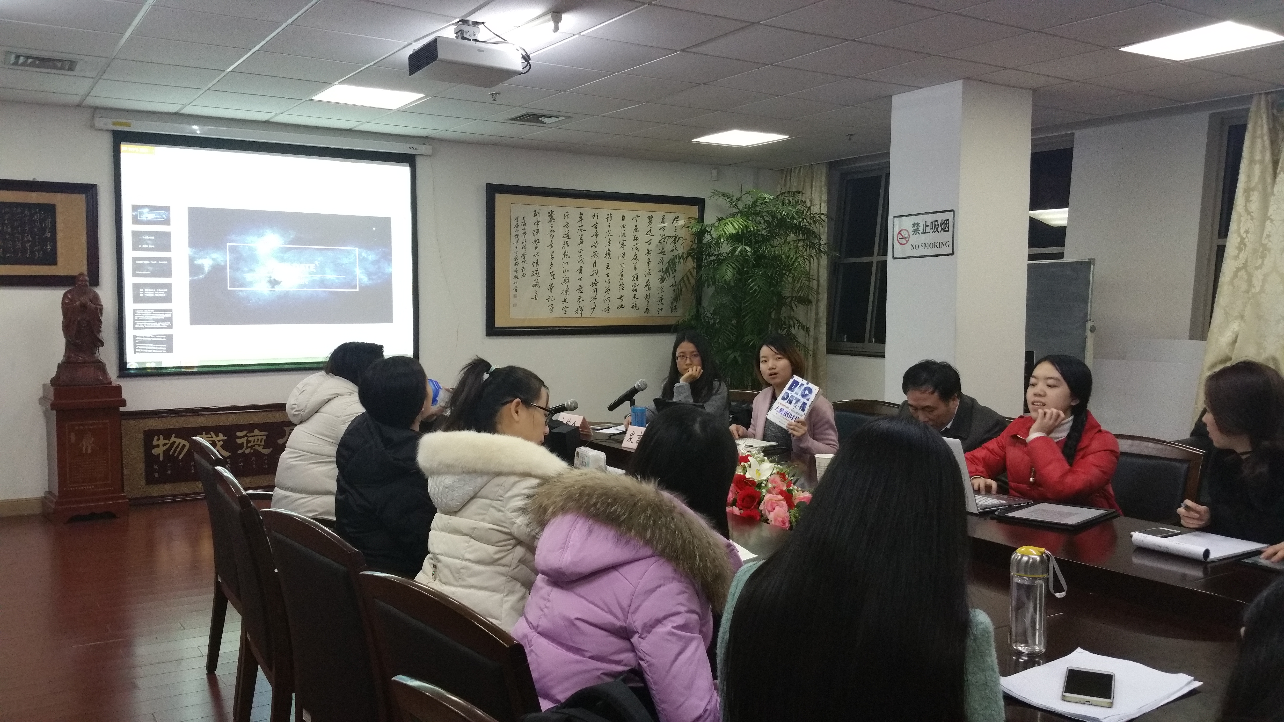 2015年12月28日晚18:00,det365登录网站在B401会议室举行了主题为"品经典之书 悟哲学之理"的读书会。本次读书会的阅读书目为《大数据时代》,由王天恩老师担任点评人,15级马理专业硕士生张艳春主持,15级马理专业硕士生李萌及15级哲学专业硕士生欧阳曼主讲,部分15级硕士及博士生参加了读书会。 在读书会上,李萌同学首先分享了她阅读《大数据时代》感悟,她结合文本以及相关文献提出了两个问题:(1)什么是大数据;(2)数据化、数字化的区别和联系。随后欧阳曼同学也根据自己的阅读和理解做了分享。接下来同学们根据两位主讲人的分享内容进行了热烈的讨论。马健文同学以最近开发的挂号APP为引,认为大数据是一个未来发展的趋势;夏露同学主要从伦理的角度阐明了自己的观点,她认为技术开发者主要关心的是对科学真理的追求,而我们的哲学研究者可以从哲学层面来跟他们进行思维的碰撞;顾思佳同学则对科技发展充满了信心和渴望,她觉得大数据是一个时代变革。 最后,王天恩老师就该场读书会作出了点评,肯定了同学们的充分准备,也对同学们讨论的问题做出了详细解答,提出了自己的意见。 此次读书会是一次学生主讲为主、充分发挥学生自主性的读书会,把自主学习与教师指导相结合,使同学们对《大数据时代》这本书中的重要理念有了更专业的理解,也对大数据时代下社会的发展有了更深刻的想法。 det365登录网站2015级研究生夏露 |