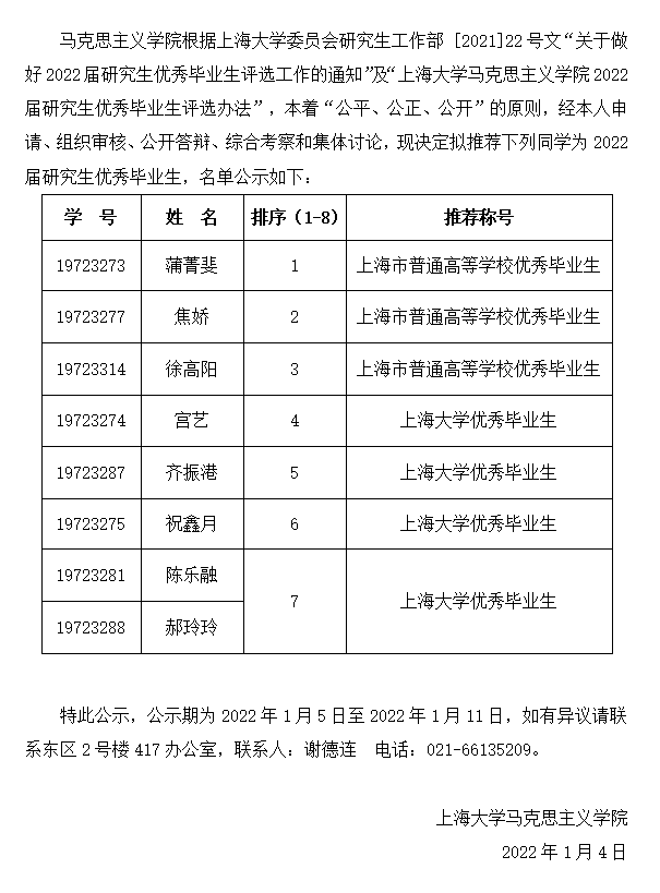 det365登录网站2022届上海市、上海大学研究生优秀毕业生候选名单公示