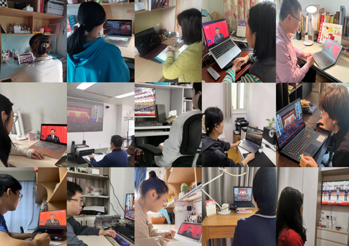 10月16日上午10时,中国共产党第二十次全国代表大会在北京人民大会堂隆重开幕。习近平总书记代表第十九届中央委员会向大会作报告。大会的主题是:高举中国特色社会主义伟大旗帜,全面贯彻新时代中国特色社会主义思想,弘扬伟大建党精神,自信自强、守正创新,踔厉奋发、勇毅前行,为全面建设社会主义现代化国家、全面推进中华民族伟大复兴而团结奋斗。 det365登录网站党委第一时间组织师生通过线下集中学、线上自主学的方式收看大会实况直播,学习党的二十大报告、领悟党的二十大精神。det365登录网站党政班子成员、党支部书记、思政课教师代表以及本硕博学生党员代表于东区2号楼208会议室集体收看开幕会直播,守常党支部于502会议室同步观看学习,其他学生于线上集体观看,马院师生深受鼓舞,会后迅速掀起讨论热潮。