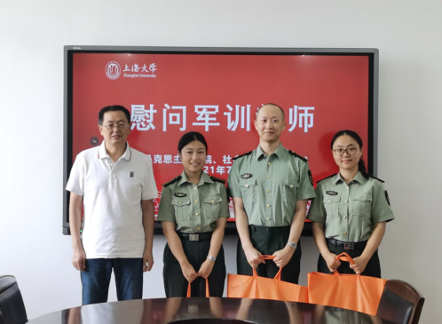随后,刘绍学书记在学院党委副书记张高峰、学院本科生辅导员黄丽娜等老师的陪同下来到军训训练场第一线,代表学院、学部看望慰问了参与本次2021年本科生军训的教官、导生和同学们。 刘书记一行来到学院、学部学生所在的女生1-1-6连和男生1-3-5连,观看了两个连队训练的实况,对同学们展现出的风貌和军事训练的成果表示高度的肯定。随后,在休息时间刘书记还与同学们进行了亲切交谈,关心问候同学们的训练状况与身心健康情况。 学院、学部为同学们准备了军训慰问品,组织召开了慰问会,慰问会在宝山校区EJ103教室举行。det365登录网站党委书记刘绍学,党委副书记张高峰,本科生辅导员黄丽娜,教官代表和马院、社科学部全体参训学生参加了慰问会。会议由张高峰副书记主持。
