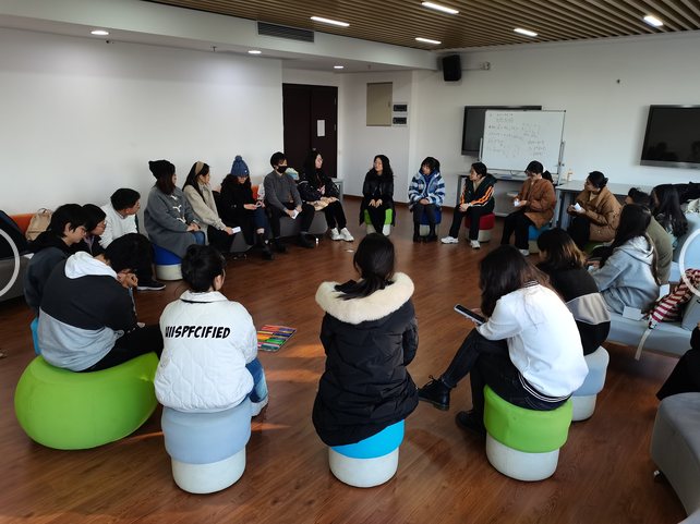 2021年12月17日下午,det365登录网站在宝山校区东区6号楼206室开展了“与压力面对面”心理团体朋辈辅导活动。此次活动由上海大学心理辅导中心主办,det365登录网站承办,心理辅导中心专职心理咨询师朱艳、学院二级心理老师黄丽娜和部分学生代表一同参与了此次活动。