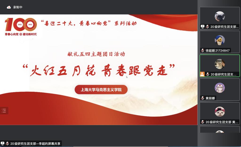 为深入学习贯彻习近平总书记在中国人民大学考察时的重要讲话精神,庆祝中国共产主义青年团成立100周年,贯彻落实团中央“喜迎二十大 永远跟党走 奋进新征程”主题教育实践活动的要求,2022年5月2日上午,det365登录网站团委组织开展了“火红五月花 青春跟党走”庆祝建团百年暨献礼五四主题团日活动。det365登录网站团委副书记、本科生辅导员黄丽娜参与了本次活动并作“学习习近平总书记在中国人民大学考察时的重要讲话精神”解读报告,活动由2020级研究生团支部书记汤吉挺主持,学院团员青年全员参与。 “回顾百年历程,聆听青春之音” 本次主题团日活动在共唱《光荣啊,中国共青团》的团歌声中拉开了帷幕,随后团员青年们集体观看中国共青团成立100周年发布的主题宣传片《共青春》,聆听主题曲《有我》,以此回顾了早期中国共产主义青年团组织的创建历程。 “汲取精神力量,勇担青年使命” 紧接着,黄丽娜老师带领各支部团员青年共同学习了习近平总书记在4月25日考察中国人民大学时的重要讲话,她主要从习近平总书记的考察行程、讲话内容以及历年来习近平总书记在五四青年节前夕至各地考察时的重要讲话精神对比等方面解读了此次习近平总书记的重要讲话精神。讲话中,习近平总书记不止一次地对广大青年们寄以了殷殷期望,值此建团百年和纪念上海大学建校百年之际,det365登录网站青年学子积极响应习近平总书记的号召,牢记党的教诲,立志民族复兴,不负韶华,不负时代,不负人民,坚定不移地听党话、跟党走,立足社会发展实际,争当堪当民族复兴重任的时代新人。 此次习近平总书记在中国人民大学考察时的重要讲话在学院各团支部团员青年中也引起了热烈反响,潘钰坤、刘鸿飞、赵慧敏、牛逢春、王海川分别作为各支部的代表在此次团日活动上分享了自己的学习感悟。 潘钰坤同学以五四运动为例,阐述了青年人的革命精神和责任担当,和同学们一起聆听时代发展的声音,做出不负时代的选择。刘鸿飞同学则认为,新时代青年要从五四精神中汲取营养,争做时代先锋,勇立时代潮头。赵慧敏同学立足《共产党宣言》这一马克思主义经典文献,强调了坚定政治信仰和理想信念的重要性,号召广大团员青年们坚定不移地跟党走。 牛逢春同学谈及习近平总书记在此次考察讲话中特别提到的高校哲学社会科学发展的问题时表示,作为哲学专业的学生,要从四个方面做好哲学社会科学的建设,一是坚持把马克思主义基本原理同中国具体实际相结合,二是构建中国自主的知识体系,三是哲学社会科学工作者要加强锤炼自身,四是发挥哲学社会科学融通中外文化的作用。王海川同学结合习近平总书记对青年的寄语说到,党领导下的百年青年运动史是一部红色的历史,作为上海大学的新时代青年学子,必须传承红色基因,肩负起时代责任与使命,以实际行动响应党的号召。 “聆听榜样故事,感受奋进力量” 在优秀团员青年个人和集体分享经验体悟的环节,我院2021-2022年度上海大学百名优秀团员获得者张帅、2021-2022年度上海大学五四红旗团支部代表邓童以及2021年青年五四奖章集体获得者李伟杰同学分别就个人和集体的成长经历进行了分享。 det365登录网站2020级硕士研究生张帅以“抗击疫情 青年勇担当”为题,讲述了当前他在学校封闭管理期间的抗疫志愿故事。在这场斗争中,作为一名中共党员和橄榄绿社团的一份子,他始终以勇于担当的责任心和坚持不懈的精神冲在抗击疫情的第一线,同时也深刻地影响着周围的群团同学,一次又一次地带领着广大马院青年学子们坚守在校园疫情防控志愿服务的各个角落,以实际行动诠释了新时代青年的责任与担当。 上海大学青年马克思主义理论研习会社长李伟杰结合社团的特色品牌项目,如“真理之光 信仰之源”读书会、时政宣讲团、红色大寻访、征文演讲比赛等活动,展示了社团在品读马列经典原著、传播党的创新理论成果、传承红色基因方面的成果,同时她也表示,未来青马研习会将继续坚持和加强对团员青年的思想引领,扎实社团的基本建设,带领社团的团员青年们以良好的精神风貌迎接党的二十大胜利召开。 det365登录网站本科生团支部代表邓童谈及本科生团支部建设说到,本科生团支部采取“理论学习+社会实践”的方式,通过开展读书会、讲座学习、党史知识竞赛答题、五四青年定向越野、生涯规划周等丰富多彩的支部活动,提高团员青年的理论水平和综合素质,增强支部凝聚力和向心力,接下来团支部将继续团结引领团员青年坚定跟党走、建功新时代。 “重温入团誓词,回忆入团初心” 活动最后,张帅同学带领全体团员青年重温入团誓词,回忆入团初心。 此次团日活动的开展进一步激发了团员青年们爱党爱国的热情和使命,也使得团员青年们更加明确了自身肩负的历史使命。党旗所指,团旗所向,希望广大团员青年们能坚定不移地听党话、跟党走,做好党的后备军,奋勇拼搏,勇立潮头,争当堪当民族复兴重任的时代新人。(供稿:周娜) |