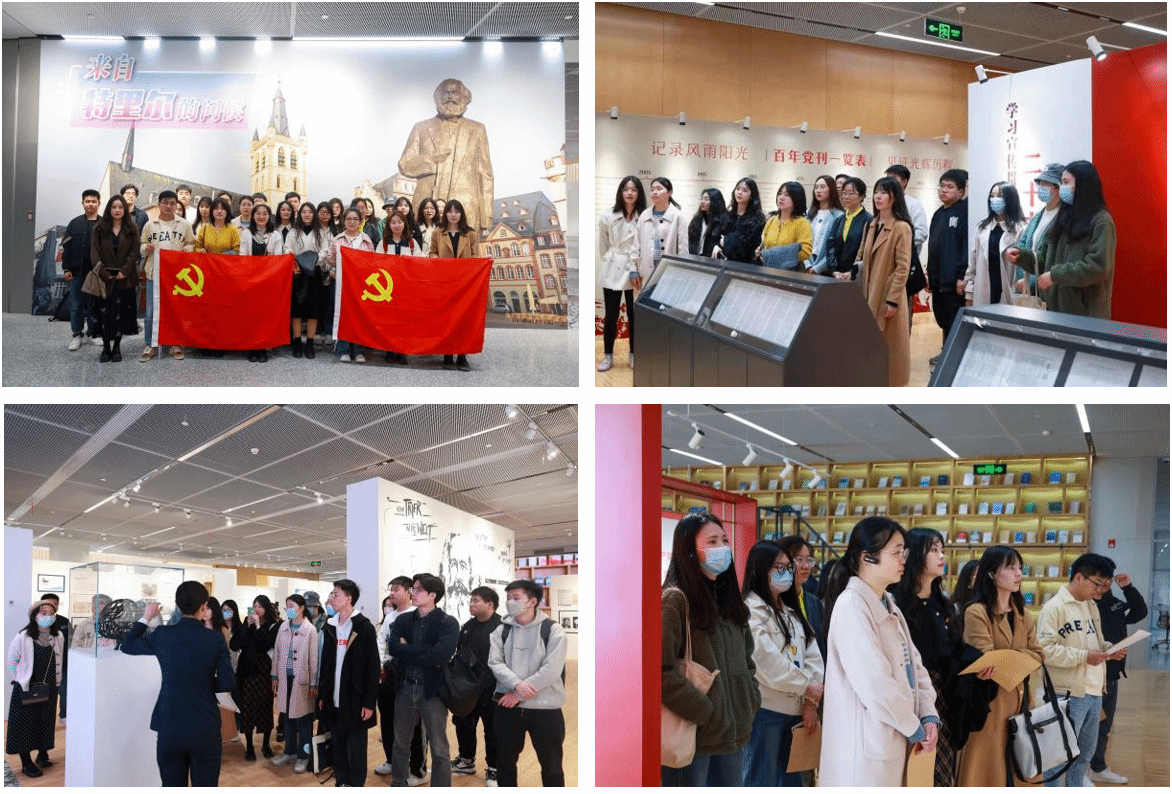 听榜样故事,学榜样精神 为纪念马克思逝世140周年,进一步了解马克思的革命实践、理论贡献和精神境界,了解马克思主义在中国传播、运用和丰富发展的光辉历程,不忘初心、牢记使命,更加自觉地高举中国特色社会主义伟大旗帜,深入学习贯彻党的二十大精神。3月31日下午,博士生党支部和研究生第一党支部联合举办以“听榜样故事,学榜样精神”为主题的党日活动,前往上海社科馆参观“卡尔·马克思生平与著作展”。 在此次参观学习过程中,党员们认真倾听专业人员讲解,认真观看现场展览照片和实物等,深入了解了马克思的生平、马克思主义的传播史及相关刊物,深刻感悟马克思主义在中国传播的历程。党员们纷纷表示,未来定将以马克思的思想与精神不断激励自己,在坚定理想信念的道路上不忘初心,砥砺前行,以更加饱满的精神、更加优异的成绩,践行对党的庄严承诺。