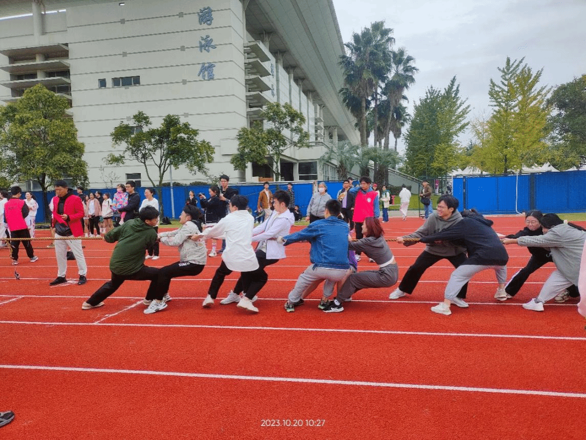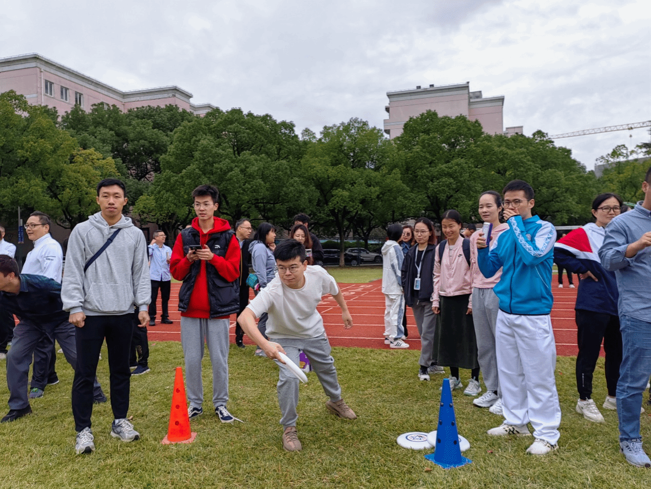 今年,det365登录网站广播体操教职工队伍由18位老师组成,同时,学院的本科生也作为秋白书院的代表参加到广播体操比赛中。广播操是一项需要动作协调、节奏感强的活动,对参与者来说,不仅需要整齐划一地完成动作,还需要展现出饱满的面貌。当天,det365登录网站教职工队伍以身作则,在广播操比赛的赛场中舞出风采、舞出活力。此外,还有10位教师代表参加了趣味运动会中的“飞盘九宫格”“锁定新目标”项目,一位青年教师还参加了“平板支撑”的个人赛。学生运动员们过关斩将,相继参与了混60米迎面接力、混拔河、混旋风跑、混单脚跳接力、混袋鼠跳迎面接力等项目,在运动会上展现了团结合作与拼搏进取的精神风貌。
