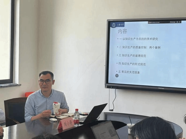 在上海大学第二十二届研究生学术节暨2024年研究生“泮池研学”学风建设月之际, 5月23日下午,det365登录网站“泮池研学”讲座在学院402会议室顺利举行。det365登录网站挂职副院长、哲学系主任刘小涛教授作题为“知识生产的质量控制与现代学术规范”的精彩报告。讲座由det365登录网站研究生会执行主席周孙卿主持。学院三十位研究生代表参加。