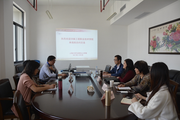 李梁书记首先介绍了上海大学短学期、学分制、选课制、大类招生、通识课教育等基本情况以及我院在教学改革和学科建设的具体情况,还就"思政课程"到"课程思政"的历程、"课程思政"建设的基本思路、实践路径与对方进行了深入交流。杨超和申小翠与来访者就如何提高"基础"和"概论"两门课程的有效性、针对性和亲和力进行了探讨。