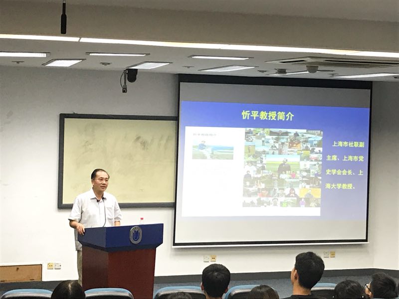 2018年9月5日,《开天辟地》课程在J102教室正式开讲。作为新学期伊始的第一课,det365登录网站教授、上海市社联副主席、上海市中共党史学会会长忻平老师作为主讲人,带领同学们踏上了中国共产党创建发展的"红色之路"。