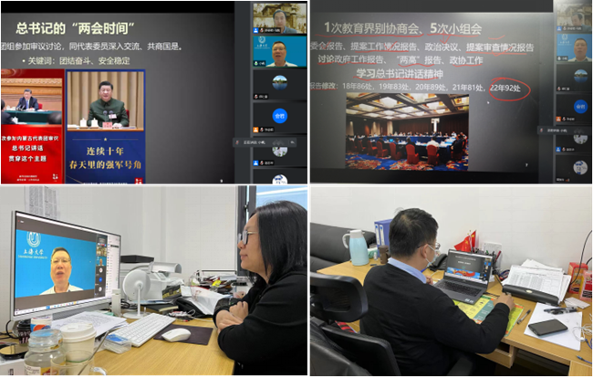 全国“两会”是观察中国政治生活的窗口,其中既有世界关注的政治经济宏大叙事,也有关乎百姓民生的细微关照。汪校长首先对今年两会的总体情况进行了介绍,谈了今年“两会”呈现的新特点。随后,汪校长重点解读了习近平总书记在“两会”期间的重要讲话精神和李克强总理在第十三届全国人民代表大会第五次会议上作的政府工作报告,着重介绍了大学生们关心的教育、就业等问题。 学院党委书记王国建指出,汪校长报告内容丰富、观点鲜明、信息量大,为我们进一步了解今年“两会”精神进行了很好的阐释。学院教师要以此为契机,深入学习贯彻“两会”精神,推动“两会”精神融入思政课堂、融入日常工作,以优异成绩迎接党的二十大。 |