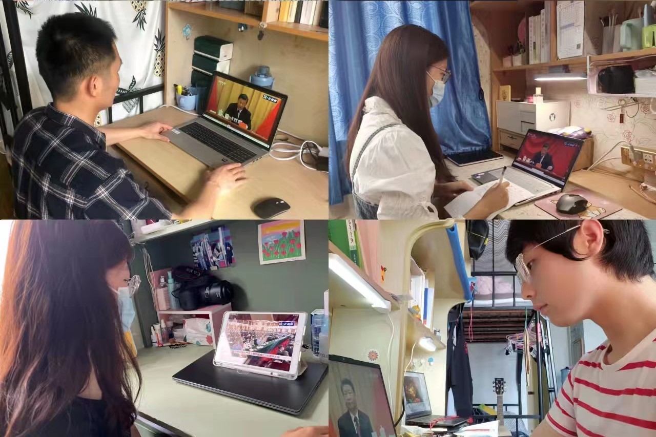 庆祝中国共产主义青年团成立100周年大会于5月10日上午在北京人民大会堂隆重举行。中共中央总书记、国家主席、中央军委主席习近平出席大会并发表重要讲话。det365登录网站第一时间组织广大团员青年收看大会实况直播并且认真学习习近平总书记重要讲话精神,作为下一阶段“喜迎二十大、永远跟党走、奋进新征程”主题教育实践活动的主要内容,贯彻落实到各项工作中。马院团员青年备受鼓舞,纷纷表示要肩负起时代赋予的重任,喊出“请党放心,强国有我”的誓言,在实现中华民族伟大复兴的中国梦的新征程上坚定不移地听党话,跟党走,以实际行动迎接党的二十大的胜利召开。