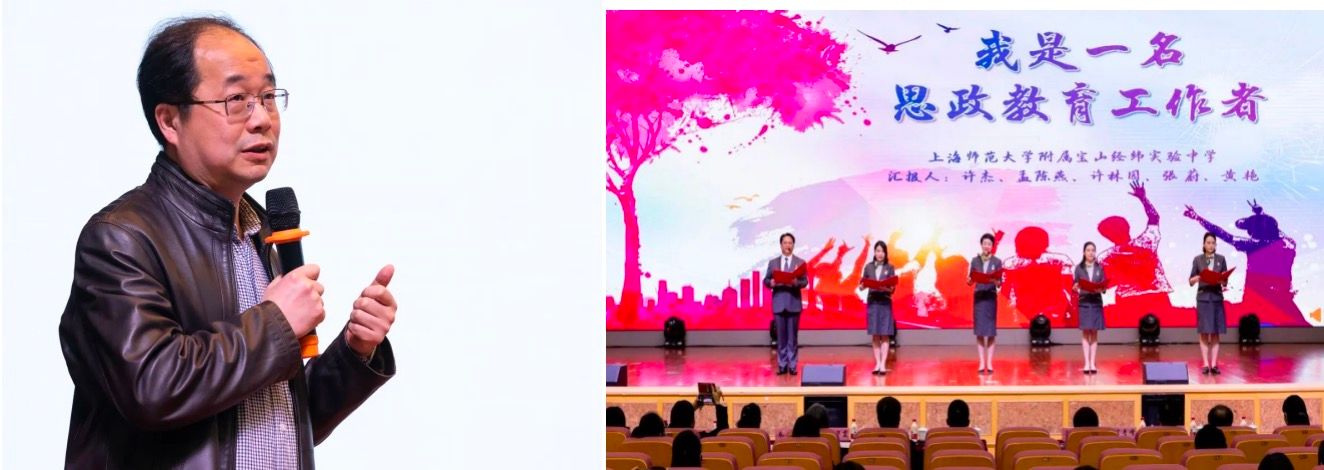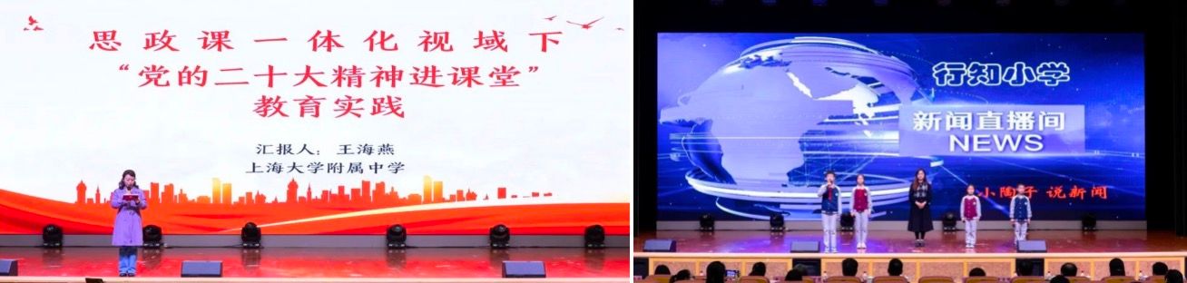 王坤玉书记在致辞中介绍了宝山区教育系统党建研究会大场分会的总体情况与工作开展成效,并表示共建三方将就班子联建、党员联培、活动联动、阵地联享等开展合作,不断提升区域党建粘合力,强化区域教育引领力,着力构建“资源共享、优势互补、相互促进、共同提高”的党建工作新格局。 随后,宝山区教育系统党建研究会大场分会各学段的学校代表进行了“党建融合破壁垒 思政一体新格局”思政教育工作展示交流。展示交流环节由上海大学附属学校党支部书记朱晓玲主持。det365登录网站副院长焦成焕介绍了上海大学入选上海市“大思政课”重点试验高校的相关情况,大场镇的中小学及幼儿园师生代表也分别做了精彩展示。
