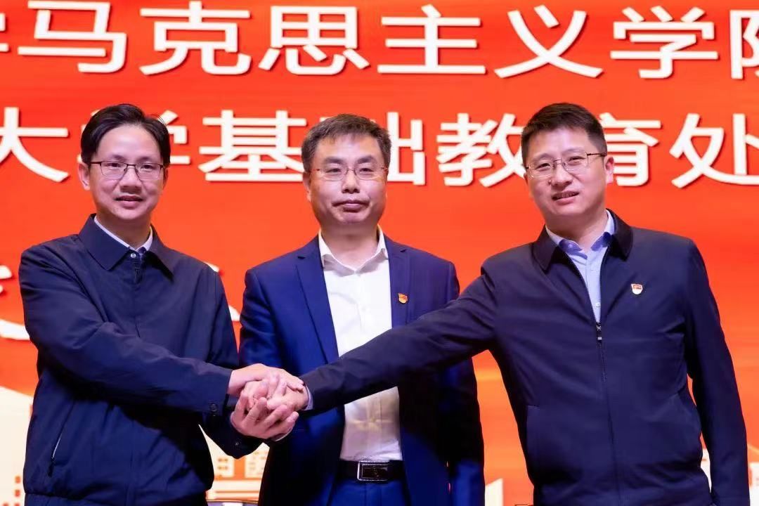 宝山区教育系统党建研究会大场分会会长王坤玉、det365登录网站党委书记王国建、上海大学基础教育处副处长肖青峰共同签署了合作协议。王国建书记表示:这次三方党建共建签约,是贯彻落实习近平新时代中国特色社会主义思想和党的二十大精神的一次具体行动,将进一步拓展和深化双方合作的内涵。上大马院将进一步完善大思政课程体系,深入推进大思政课的教育改革,统筹推进大中小学思政课一体化建设,将在机制创新、理念创新、方法创新等方面作进一步探索,推进课程思政与学科德育的创新联动发展,打造具有上大和宝山特色的党建联建大思政建设品牌。