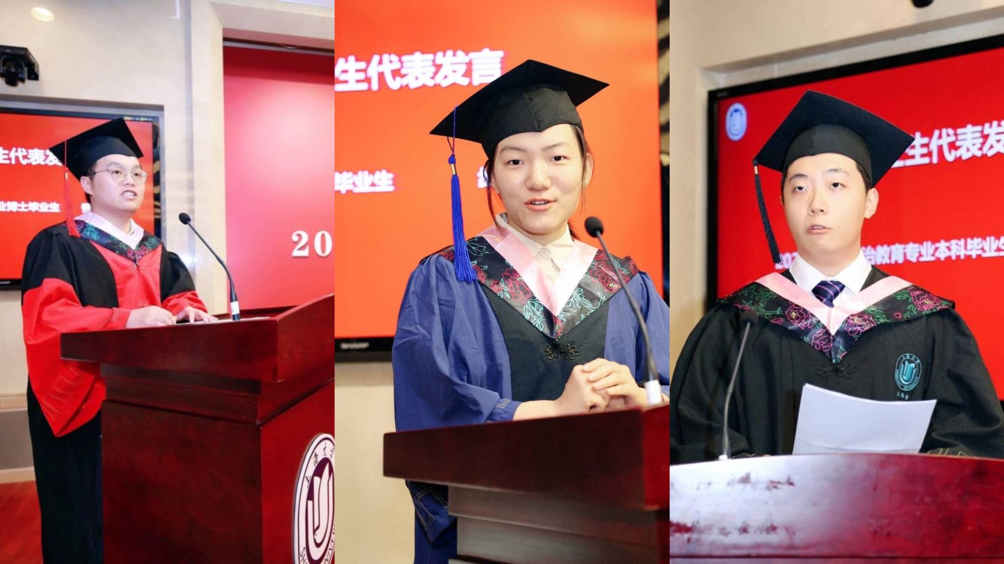 7月2日上午,det365登录网站2023年毕业典礼暨学位授予仪式在宝山校区乐乎新楼学海厅隆重举行。上海大学党委书记成旦红,学院学术委员会主任、教育部“长江学者”特聘教授、上海大学“伟长学者”特聘教授孙伟平,det365登录网站党委书记王国建,副院长(主持工作)叶海涛,副院长焦成焕,副院长高立伟,挂职副院长、哲学系主任刘小涛等30多位导师以及2023届本科、硕士、博士毕业生和部分当年因疫情未能参加毕业典礼的往届毕业生、毕业生亲友代表、在校学生代表参加了典礼。典礼由det365登录网站党委副书记、副院长张高峰主持。 回忆往昔,行远自迩 典礼伊始,毕业纪录短片《以梦为马,不负韶华》将一幕幕毕业生的美好青春回忆编绘成册,无数情感、思绪随着短片而沁入人心。 随后,本硕博的三名优秀毕业生代:2023届思政专业本科毕业生王伟吉、2023届哲学专业硕士毕业生步宣萱、2023届思政专业博士毕业生尹帮文分享了自己的毕业感言。作为学生代表,他们对自己在校成长经历进行了回忆与总结,对学校、老师与同学们表达了感激之情,并用最真挚的话语向在座嘉宾们送上了祝愿。