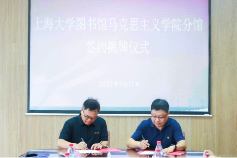 为加强学校文献资源科学管理,盘活文献资产,发挥资源价值,促进馆院深度融合,结合主题教育学习成果,以解决师生文献资源保障急难愁盼的问题为抓手,在前期多次调查研究及充分沟通的基础上,9月13日上午,图书馆与det365登录网站顺利举行了上海大学图书馆det365登录网站分馆签约揭牌仪式。 det365登录网站主持工作副院长叶海涛,党委副书记、副院长张高峰,副院长高立伟、焦成焕、刘小涛,图博档党委书记王远弟,图书馆馆长潘守永、副馆长郑维出席了签约揭牌仪式。仪式由张高峰主持。