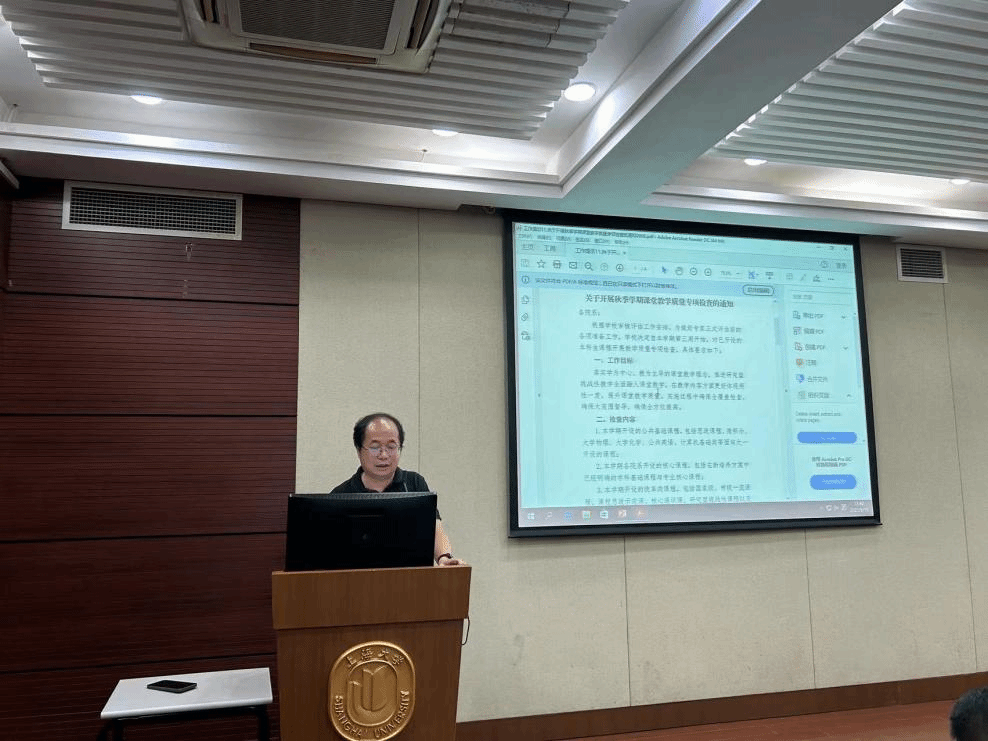 焦成焕介绍了本科审核评估工作的推进情况及秋季学期课堂教学质量专项检查工作,围绕《上海大学教学事故及教学过失认定及处理办法(试行)》,结合最近督导中发现的问题,重点强调了教师教书育人的使命和职责,要求学院全体教师要认真学习文件内容,坚决杜绝教学事故的发生。
