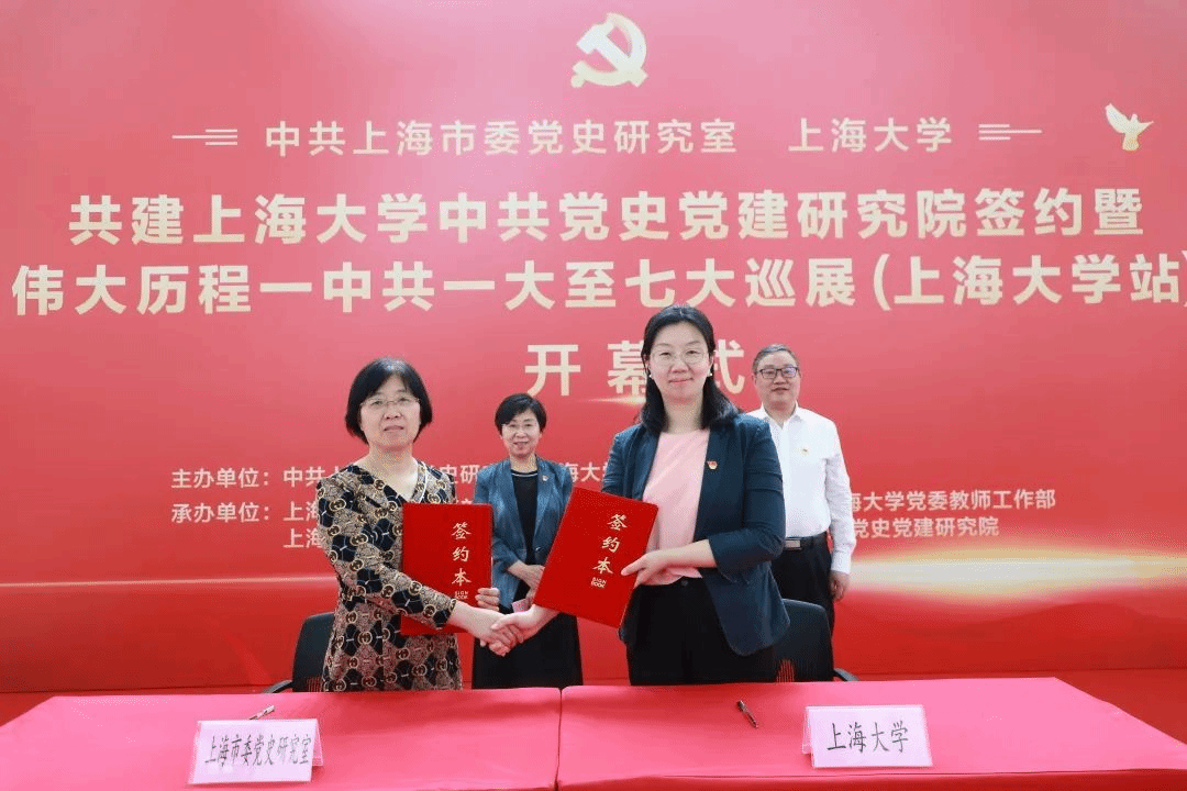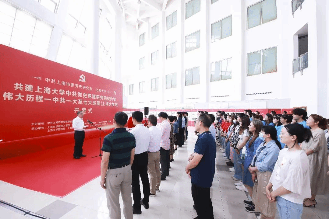 6月12日,中共上海市委党史研究室与上海大学共建上海大学中共党史党建研究院签约仪式暨“伟大历程——中共一大至七大巡展(上海大学站)”开幕式在上海大学本部图书馆五楼展厅隆重举行。