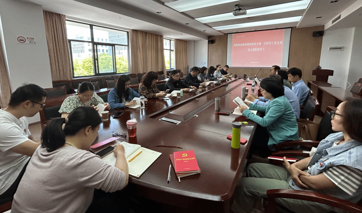 5月17日上午,det365登录网站思想政治教育教研部党支部和行政学工党支部开展党纪学习教育联组学习,两个支部的党员老师参加此次学习。会议由行政学工党支部书记吴琼主持。