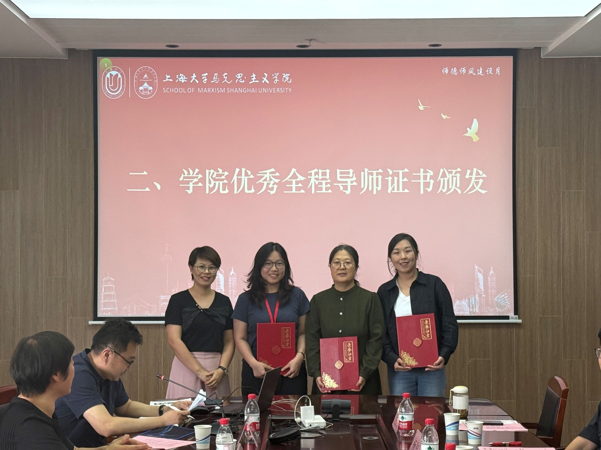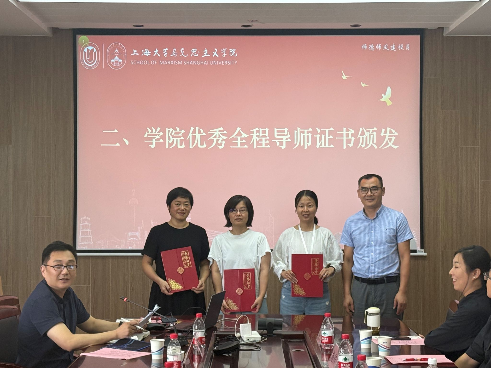 随后,王国建、张印兰、刘小涛分别为获评2023-2024学年学院及派驻原社区学院的“优秀本科生全程导师”代表们颁发证书并合影留念。