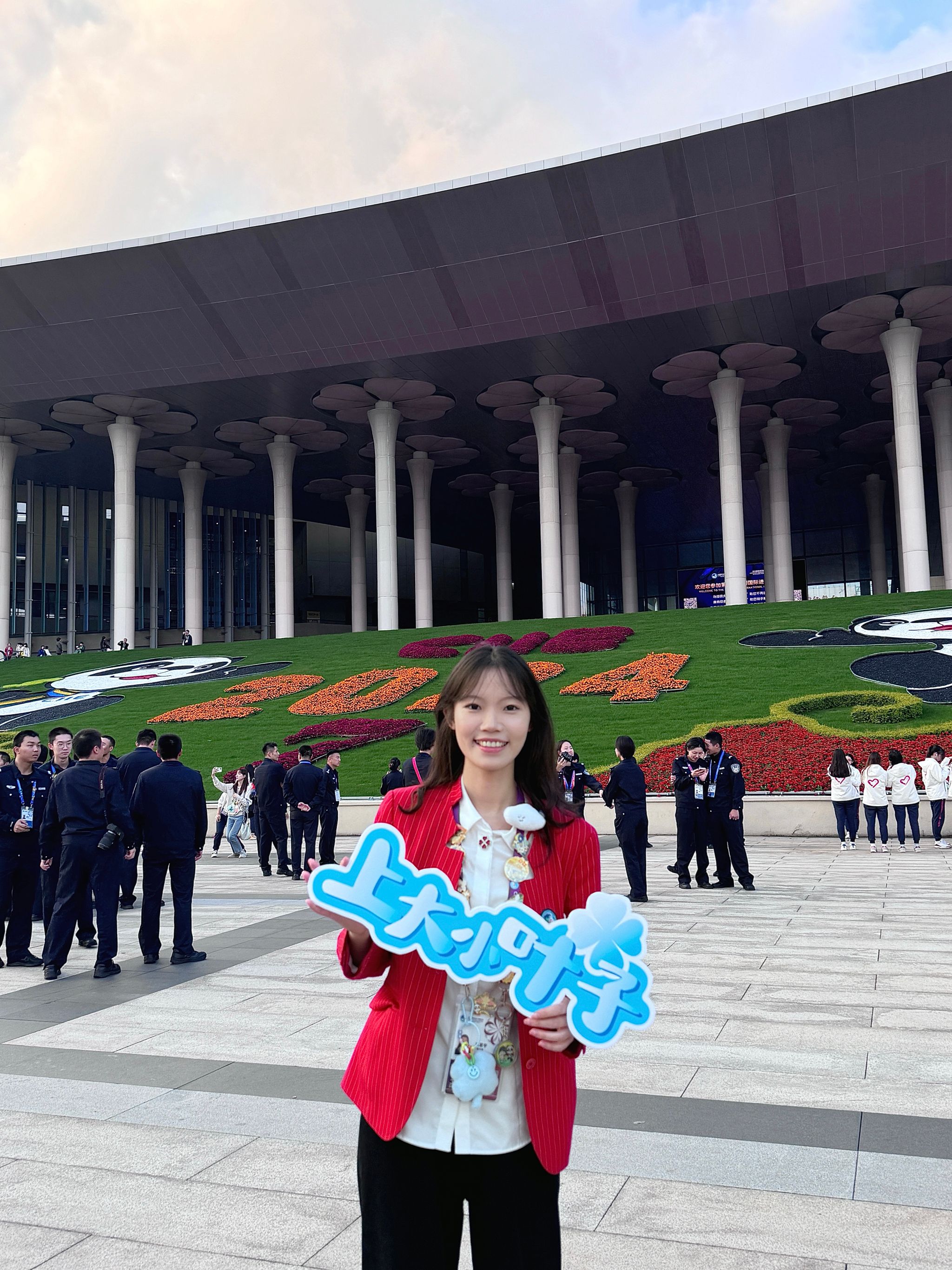 今年是我第一次参与进博会志愿服务,作为一名“一年级”的“小叶子”,我主要负责临时党团支部主题党团活动策划、活动组织和正式展会期间的内宾接待任务。在参与进博服务保障工程中,我倍感喜悦和荣幸。喜悦是自己能够参与到这么高规格的盛会,见识到各行业领域的前沿,看到一个个重点交易项目达成,切身感受到时代的发展巨变。荣幸的是自己作为一名青年大学生,一名青年党员,能够用真挚的服务接待各位领导嘉宾,在进博会这个面向全世界展示中国经济的窗口,展现中国青年和上大学子的风采。 本次服务经历不仅提升了我的组织协调和沟通交流能力,更让我切身感受到了进博会的重要战略意义,深刻体会到党的二十届三中全会所擘画的进一步全面深化改革、推进中国式现代化的宏伟蓝图。生逢盛世,当不负盛世。在今后,我将继续努力学习党的创新理论和科学文化知识,争取将青春的“小我”融入到祖国发展的“大我”中去。 2023级马克思主义理论专业硕士研究生 岳代萍